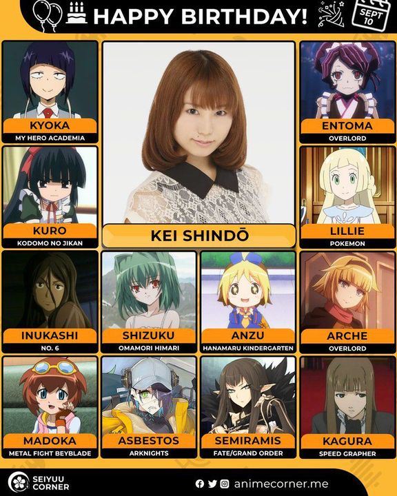 🥳 Сегодня день рождения у сэйю Кей Шиндо🔻 Ей исполнилось 41 год! 🎉#ДеньРождения #10сентября #КейШиндо #Сэйю10expand_more12expand_less
