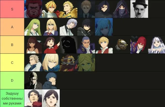 15. Можно смотреть отдельно. Никто не вправе запрещать, учитывая что это альтернативная вселенная, другая история и т.д, но... Желательно ознакомиться хотя бы с судьба/начало, это прям минимум, посмотреть остальную судьбу тоже будет не лишним. И ещё одно но, вы ну никак не поймёте каждую деталь и контекст если даже посмотрите всю вселенную, вам нужно ещё играть в игры (и в фго и в другие работы таймун), мифы и так далее, поэтому не гонитесь за этим, захотели – посмотрите, заинтересует вселенная, после фейка чекните и её, к моменту выхода 2 части может даже пересмотрите первую и кайфанёте. На этом всё, вот кстати мой тир-лист персонажей (чисто кто как понравился):