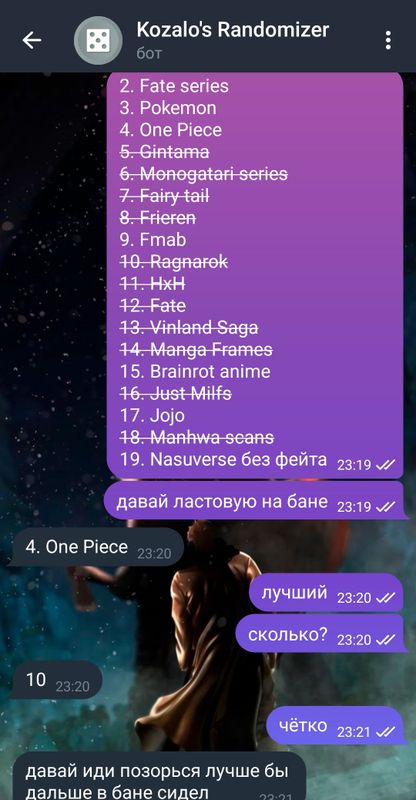 1. Главный герой - Луффи, потом Наруто2. Дейтрогонист - Ван-пис, хейчу Саске, а Исида полный ноль.3. Сюжет - Ван-пис, потом наруто.4. Девушки - Ван-пис по тому кто «лучше» и кто мне нравятся как персонажи, Блич по «красоте/внешке»5. Второстепенные персонажи - Ван-пис, потом наруто.6. Музыка - Блич, его саунды это нечто. Ван-пис и Наруто наравне хотя может наруто и выше.7. Антагонисты - Ван-пис=Наруто>Блич8. Лор и мир - Ван-пис потом наруто9. Топ любимых:1) Ван-пис2) Ван-пис3) Наруто4) Блич#Corazón #SA#Metropoliman#Bleach#Naruto#Onepiece#OnePieceCora#NarutoCora#BleachCora